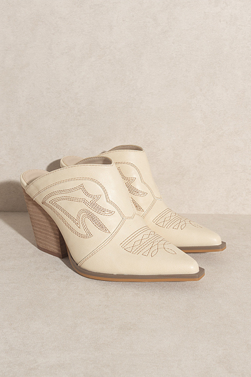 - DRESS DOWN THE WESTERN LOOK WITH THIS BEAUTIFULLY DETAILED SLIP ON MULE. THE KIARA FEATURES INTRICATE EMBROIDERY ON A MULE THAT WON'T SLIP.