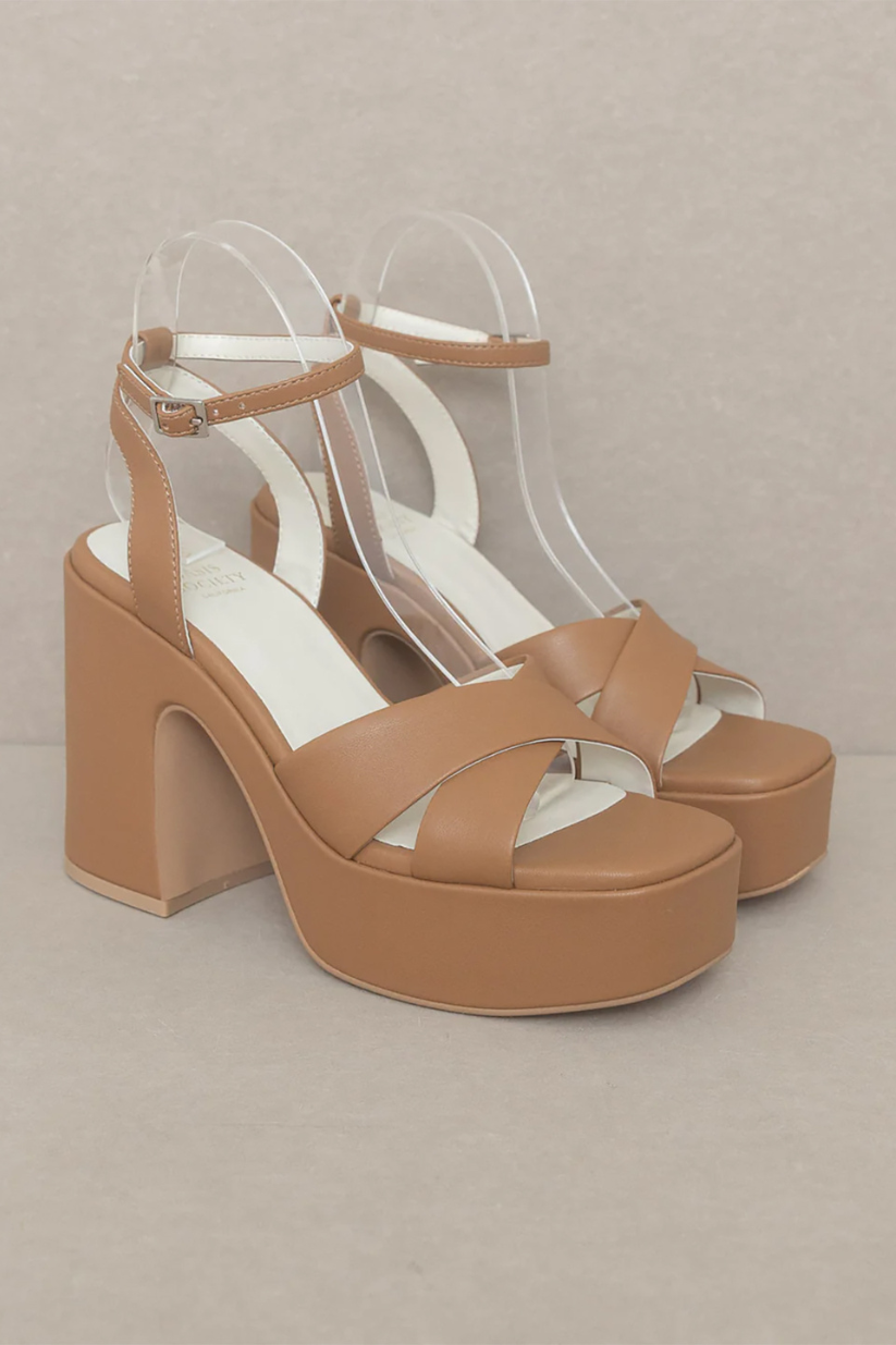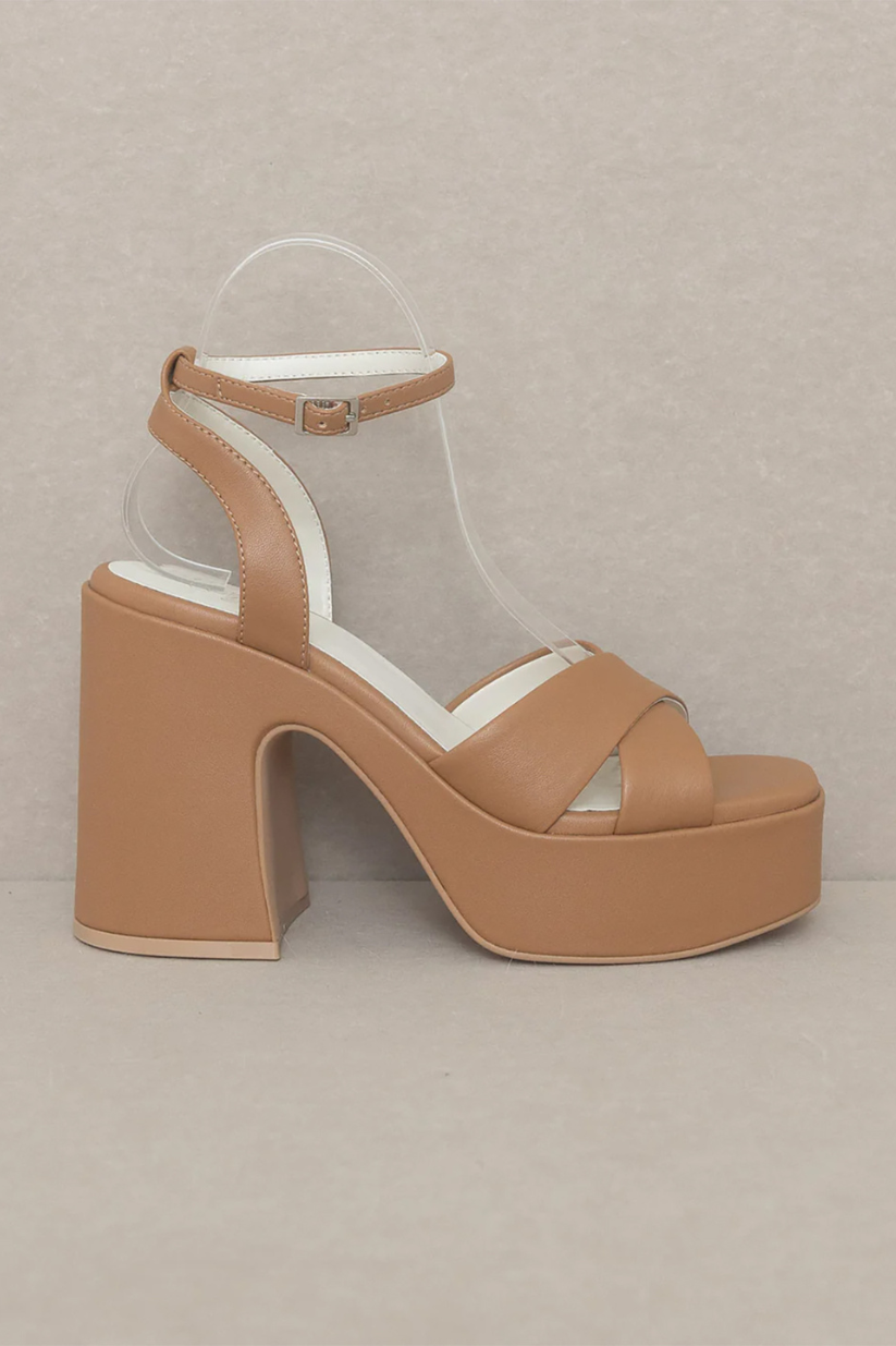 • THIS GORGEOUS CHUNKY SANDAL IS BRINGING ALL THE 70'S GLAM. THE NORAH FEATURES A CROSS STRAP FRONT AND A SWEET ANKLE BUCKLE DETAIL.